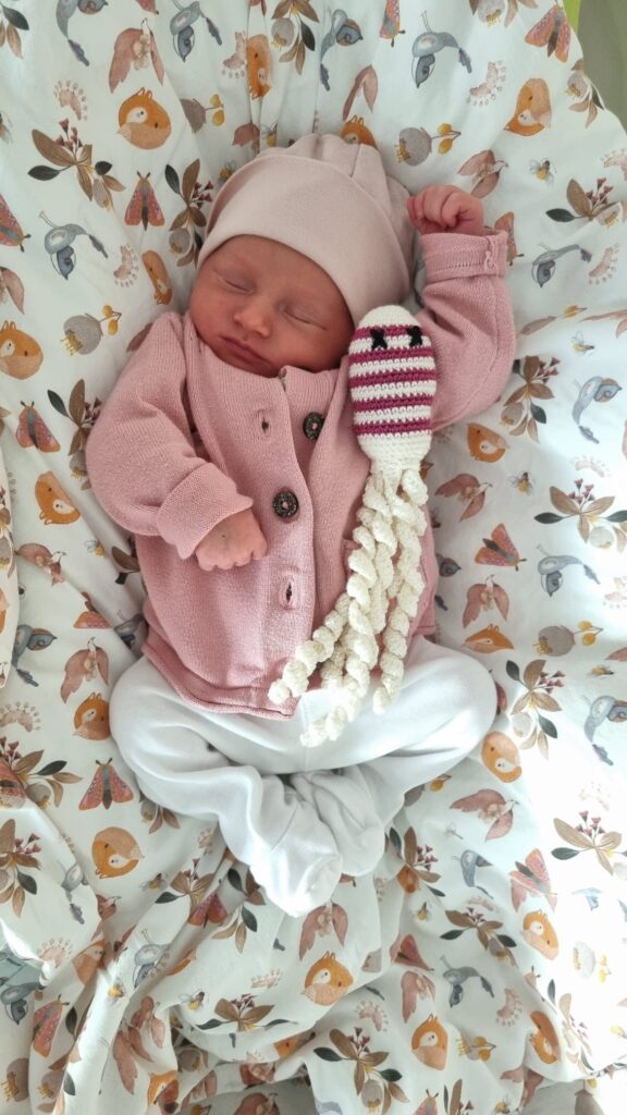 První miminko roku 2026 – malou Elizabethu a její maminku přivítala primářka MUDr. Vršková s balíčkem, který je určený pro péči o maminku i novorozence po porodu.